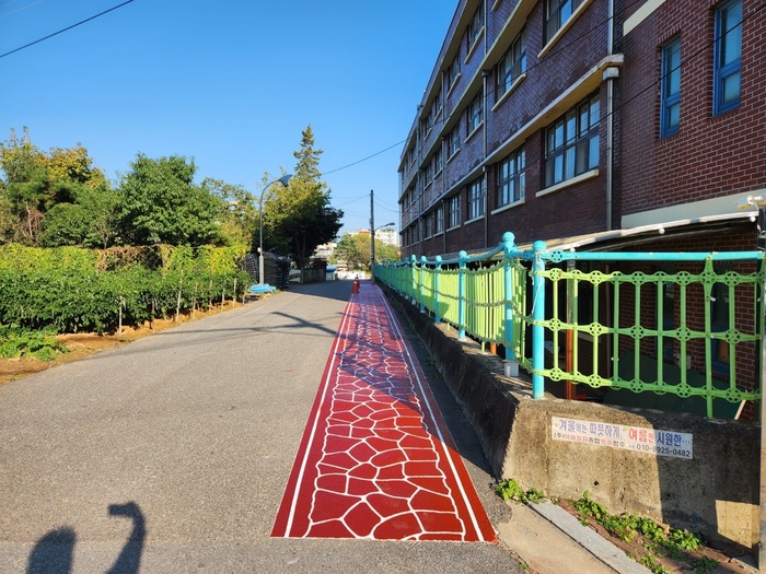 용인특례시(시장 이상일)는 어린이 통학 안전을 위해 처인구 원삼면 두창초교 등 어린이 보호구역 10곳에 도막형 바닥재(미끄럼 방지와 색깔구분 가능한 바닥재) 등 안전시설물을 설치한다고 20일 밝혔다.