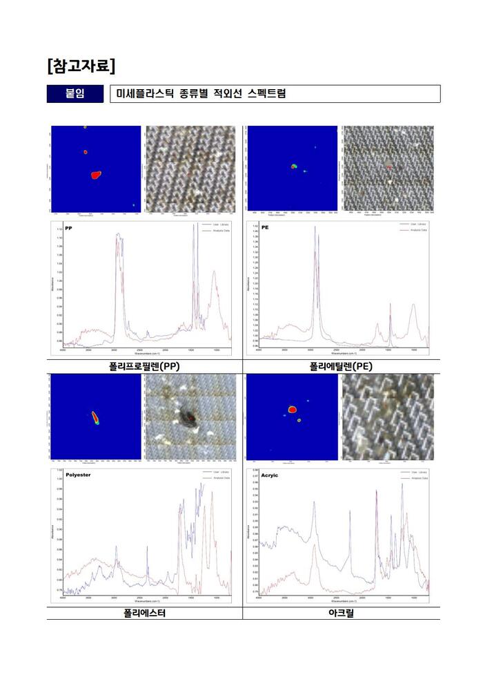 앞서 연구원은 지난해 1월부터 10월까지 도내 하천 4곳(경안천, 복하천, 오산천, 탄천)과 하수처리장 방류수 2곳(용인 레스피아, 이천하수처리장)을 대상으로 4회에 걸쳐 하천 표층수와 하수처리장 방류수 10L를 채취해 미세플라스틱(크기 20~100 ㎛)을 FT-IR(적외선분광기) 현미경으로 분석하는 방식으로 실태조사를 수행했다.