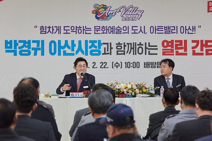 박경귀 시장은 간담회 시작에 앞서 “배방의 성장은 곧 아산 성장의 바로미터일 만큼, 배방읍은 우리 시 발전을 선도하고 있는 핵심지역”이라면서 “오늘 주신 여러 의견 하나하나 신중하게 검토해 지역 발전을 위한 소중한 양분으로 삼겠다. 유익하고 알찬 소통의 시간이 되길 희망한다”고 말했다.