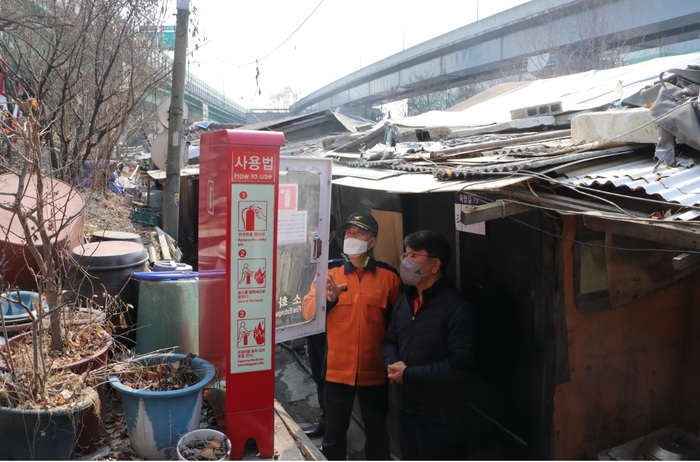 광명소방서에서는 지난 20년 11월 △주택용 소방시설 보급(소화기 42, 경보기 57) △보이는 소화기함(3.3kg 분말소화기 6대 적재) △주민이 초기화재에 대응할 수 있도록 소화기 사용법 교육을 실시한바 있고, 정기적으로 관서장의 현장 안전컨설팅을 통해 보급된 소방시설 및 소방활동 대응여건을 점검하는등 지속적인 관심을 기울여 왔다