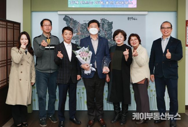 케이부동산뉴스 김교민 기자 | 이상일 용인특례시장이 28일 소상공인의 어려움을 헤아려 상가 주변 불법주정차 단속 시간을 한시적으로 유예한 데 대한 보답의 뜻으로 구갈상점가 상인회로부터 감사패를 받았다.