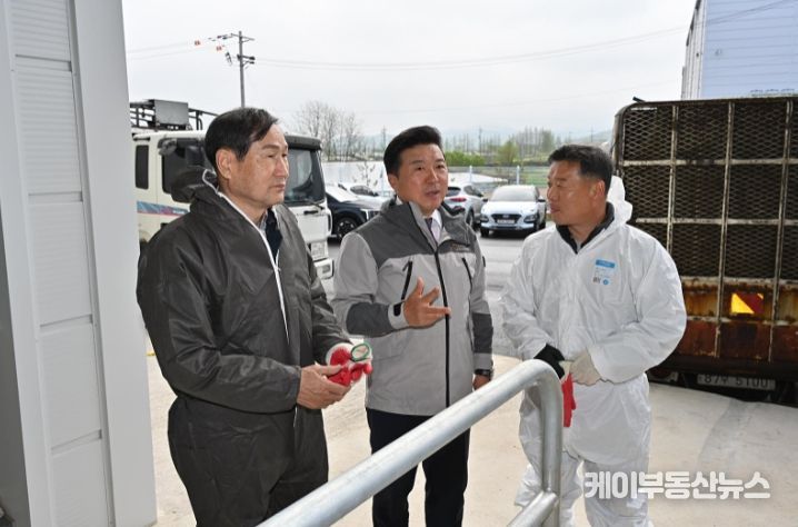 케이부동산뉴스 김교민 기자 | 최재구 예산군수는 16일에 예산수덕사IC 인근 오가면 국사봉로 440에 위치한 예산축협 가축전자경매시장을 방문해 송아지 경매 진행상황 및 축산농가 애로사항을 청취했다.