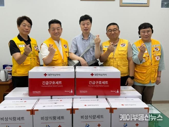 케이부동산뉴스 김교민 기자 | 대한적십자사 경기도지사는 지난 18일 폭우로 인한 피해가 있는 가구에 전달하기 위한 구호품을 평택시 세교동 행정복지센터에 전달했다.