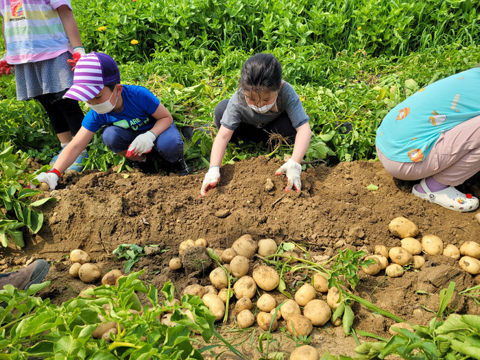 유치원생, 초·중·고교생이 하루에 250~300명씩 이곳을 찾아와 흙 속에 알알이 영근 감자를 캐 보는 체험을 한다.