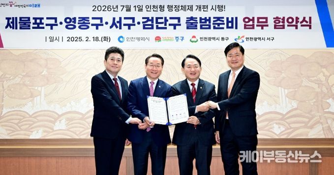 지난해 1월 법률 제정으로 인천형 행정체제 개편이 확정됨에 따라 법률 시행일인 2026년 7월 1일부터 현 인천시 중구와 동구가 제물포구와 영종구로 통합·조정되고, 서구는 서구와 검단구로 분리돼 인천시 행정체제가 2군(郡)·8구(區)에서 2군·9구로 확대된다.