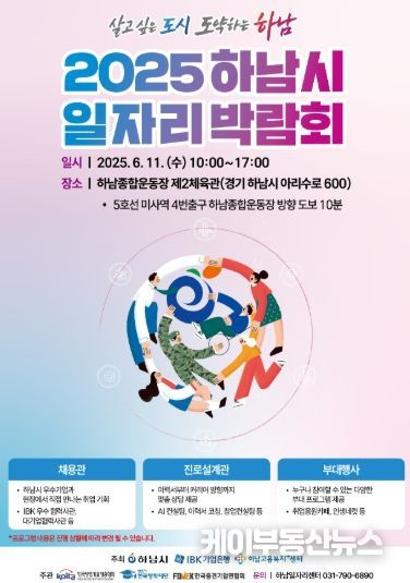 케이부동산뉴스 김교민 기자 | 하남시가 IBK기업은행, 하남고용복지+센터와 함께 오는 6월 11일 하남종합운동장 제2체육관에서 ‘2025 하남시 일자리박람회’를 공동 개최한다.