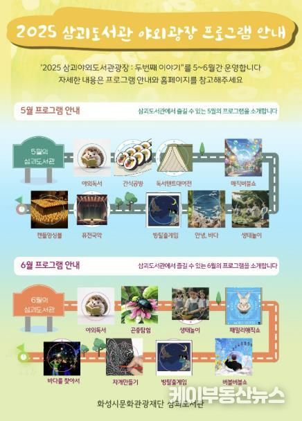 케이부동산뉴스 김교민 기자 | 화성시문화관광재단이 운영하는 화성시립삼괴도서관은 2024년 추진했던 개관 20주년 기념사업 ‘책 읽는 삼괴야외도서관 광장’에 대한 이용자들의 성원에 힘입어 올해 두 번째 이야기를 진행한다.