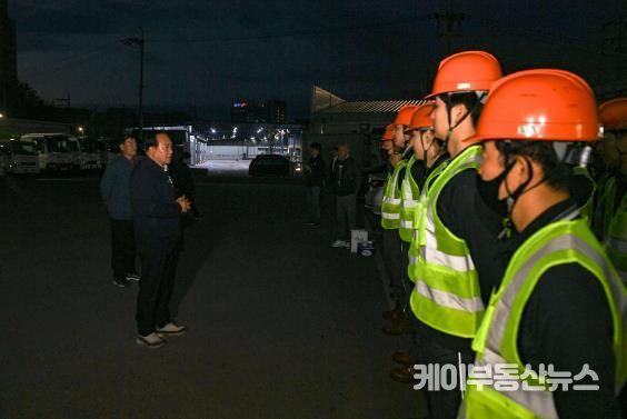 오산시장은 대행업체를 이른 아침 방문하여, 환경미화원의 건의사항을 청취하고 다가올 장마철과 혹서기의 안전한 작업을 당부했다.