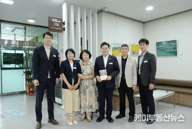 케이부동산뉴스 김교민 기자 | 양평군은 지난 2일, ‘양평 속에 그림’ 현판식을 열고, 민원실 내부에 새로운 전시 공간을 조성해 기존 민원실의 분위기를 탈바꿈했다고 밝혔다. 이번 조성을 통해 양평군청 민원실은 단순한 민원 처리 공간을 넘어, 방문객들이 대기 시간 동안 편안하게 문화를 즐길 수 있는 복합 문화공간으로 재탄생했다.