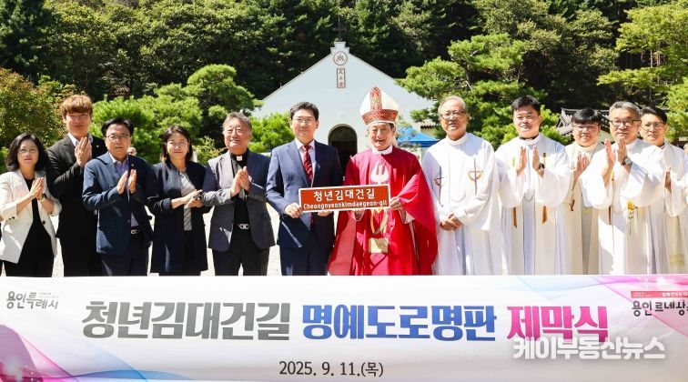 케이부동산뉴스 김교민 기자 | 용인특례시는 11일 양지면 은이성지 입구에서 ‘청년김대건길’ 명예도로명판 제막식을 열었다.