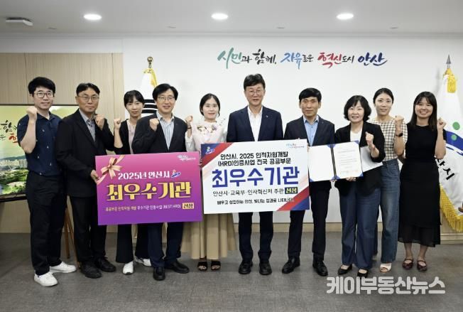 케이부동산뉴스 김교민 기자 | 안산시는 교육부와 인사혁신처, 한국직업능력연구원이 공동으로 주관하는 ‘2025년 인적자원개발(Human Resources Development) 심사’에서 공공부문 최우수기관(Best HRD)으로 선정되는 영예를 안았다고 18일 밝혔다.