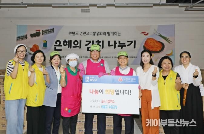 케이부동산뉴스 김교민 기자 | 원불교 수원교당은 지난 17일, 수원시 팔달구(구청장 이상균)에 김치 100박스를 기부했다.