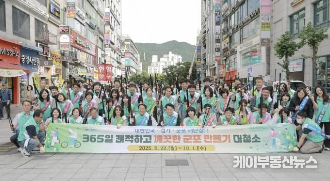 케이부동산뉴스 김교민 기자 | 군포시는 추석 명절과 2025 APEC 정상회의를 앞두고 도시 미관 개선과 쾌적한 생활환경 조성을 위한 ‘대한민국 새단장’ 캠페인의 일환으로 산본로데오거리 일대 대청소를 실시했다.
