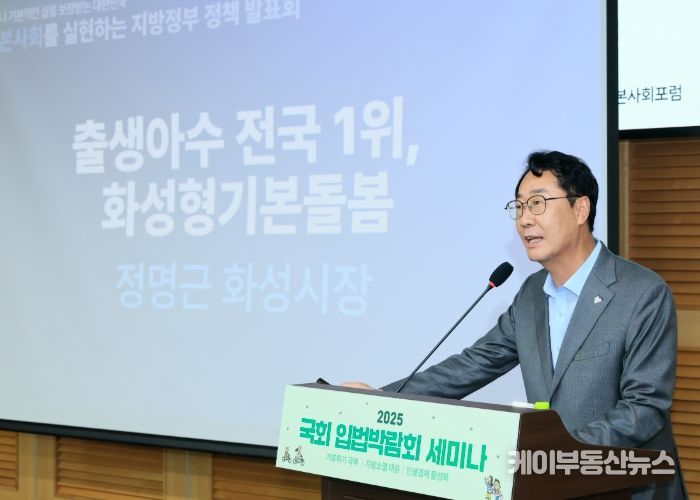 정명근 화성특례시장은 24일 국회에서 열린 ‘기본사회 실현을 위한 지방정부 정책 발표회’에 참석해, 출생아 수 2년 연속 전국 1위 기록의 밑바탕이 된 ‘화성형 기본돌봄 정책’을 직접 소개했다.