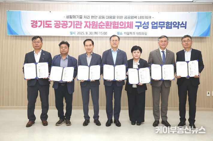 케이부동산뉴스 김교민 기자 | 자원순환 정책과 폐기물 처리 현안 및 정보 공유를 위해 경기도 내 7개 공공기관이 전국 최초의 자원순환협의체를 출범했다.