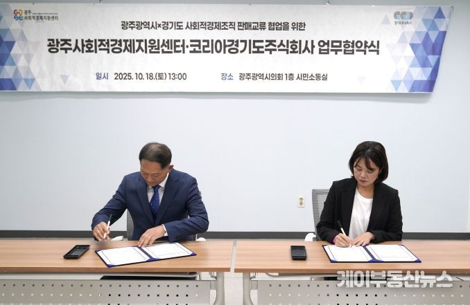 케이부동산뉴스 김교민 기자 | 경기도주식회사와 광주광역시 사회적경제지원센터가 지난 18일 광주광역시 시의회에서 ‘경기도-광주광역시 사회적경제조직 판매교류 협업을 위한 업무협약’을 체결하고 사회적경제조직 활성화를 위해 공동 노력하기로 했다.
