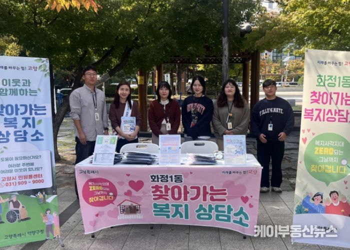 케이부동산뉴스 김교민 기자 | 고양특례시 덕양구 화정1동은 지난 22일, 덕양구청 사회복지과와 고양시 원당종합사회복지관과 함께 복지 사각지대 발굴을 위한 ‘찾아가는 복지상담소’를 운영했다.