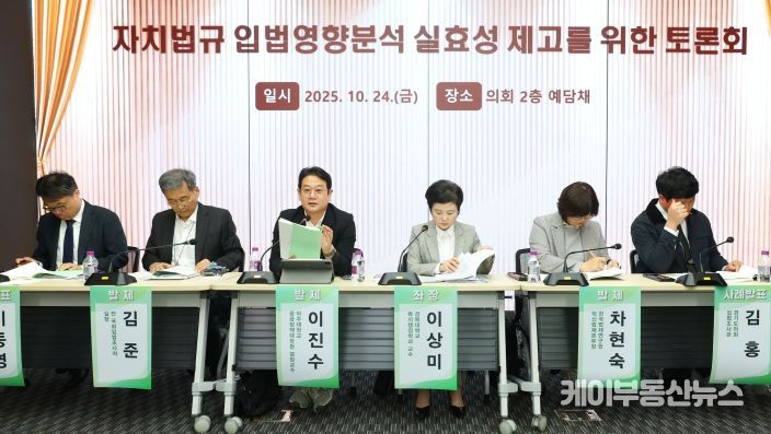 케이부동산뉴스 김교민 기자 | 경기도의회와 제주특별자치도의회는 10월 24일 금요일 오후 2시, 경기도의회 2층 예담채에서 '자치법규 입법영향분석 실효성 제고를 위한 토론회'를 공동 개최했다.