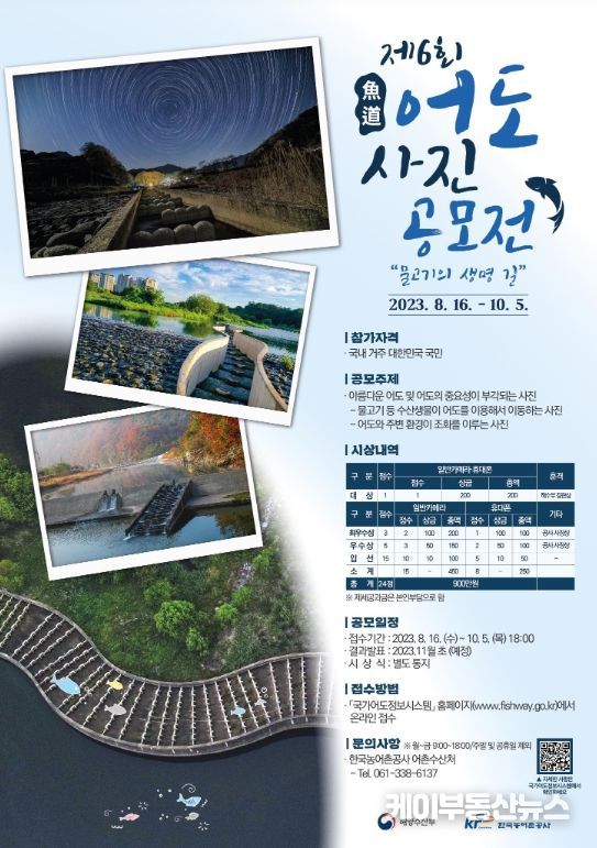 케이부동산뉴스 김교민 기자 | 해양수산부와 한국농어촌공사(사장 이병호)는 8월 16일부터 10월 5일까지 ‘어도(魚道) 사진 공모전’을 열고 작품을 공모한다.