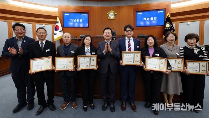 케이부동산뉴스 김교민 기자 | 오산시의회는 6일 본회의장에서 ‘오산시의회 의장 표창 시상식’을 열고 지역 발전과 주민 자치 활성화에 헌신한 위원 8명에게 의장 표창을 수여했다.