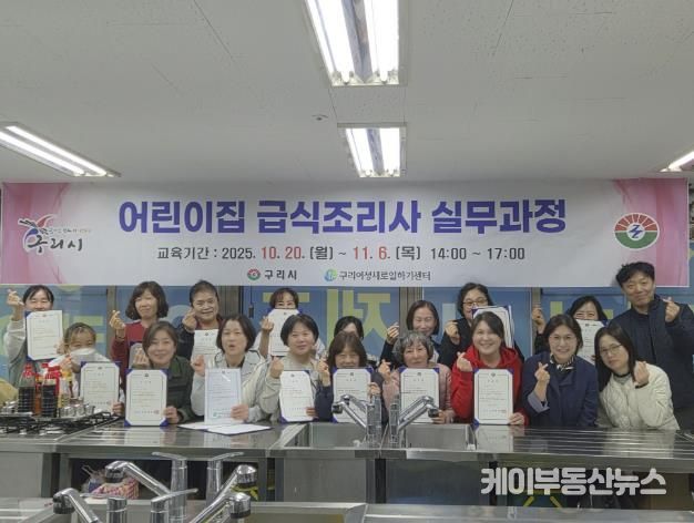 케이부동산뉴스 김교민 기자 | 구리시는 11월 6일 ‘어린이집 급식 조리사 실무과정’ 직업교육훈련 수료식을 개최하고 16명의 수료생을 배출했다고 밝혔다.