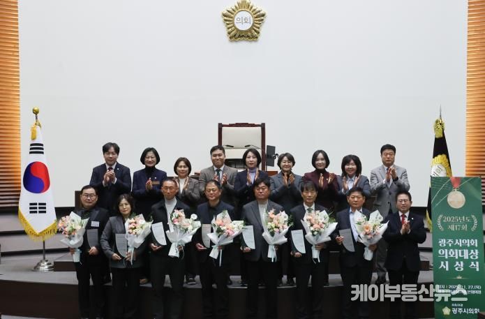 케이부동산뉴스 김교민 기자 | 광주시의회는 27일, 의회 본회의장에서 ‘제17회 광주시의회 의회대상’ 시상식을 개최했다. 올해 의회대상은 문화예술, 교육, 체육, 지역사회봉사, 지역안전, 행정, 지역경제, 언론 등 총 8개 분야에서 각 1명씩 선정하여 시상했다.