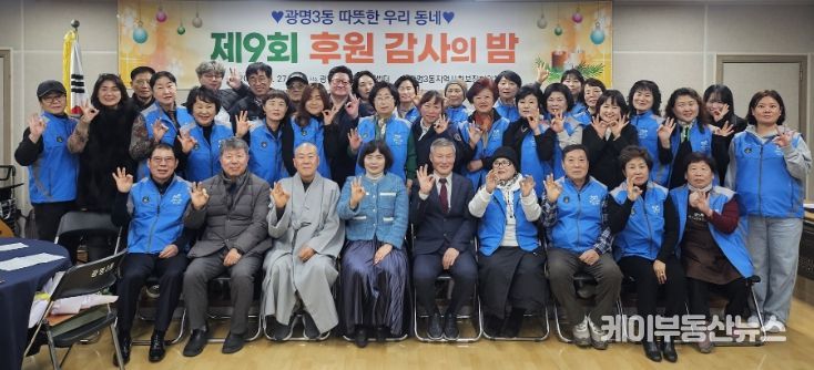 케이부동산뉴스 김교민 기자 | 광명시 광명3동 지역사회보장협의체는 지난 27일 ‘제9회 후원감사의 밤’을 열고 한 해 동안 광명3동 복지를 위해 나눔을 실천한 후원자와 지역 단체 등 100여 명을 초청해 감사의 마음을 전했다.