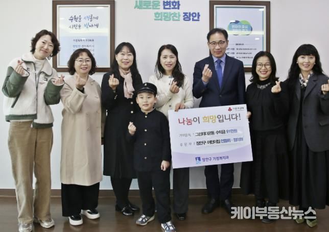 케이부동산뉴스 김교민 기자 | 수원시 장안구는 지난 28일 어린이집 연합회·협의회가 주최한 그린리더운동 수익금 전달식을 가졌다.