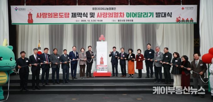 케이부동산뉴스 김교민 기자 | 용인특례시는 3일 시청 컨벤션홀에서 ‘희망 2026나눔캠페인 사랑의 온도탑제막식 및 사랑의 열차 이어달리기 발대식’을 개최했다.