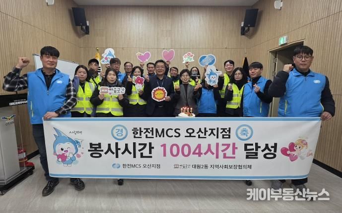 케이부동산뉴스 김교민 기자 | 오산시 대원2동 지역사회보장협의체는 지난 4일 한전MCS 오산지점과 함께 봉사 누적 1004시간 달성 기념행사를 개최하고, 그동안 지역 곳곳에서 꾸준히 나눔을 실천해 온 직원들의 노고를 격려하는 뜻깊은 시간을 가졌다. 이번 성과는 단기간의 활동이 아닌 지속적인 민·관 협력과 꾸준한 연계로 이뤄낸 결실로, 지역사회에서도 큰 의미를 지닌다.