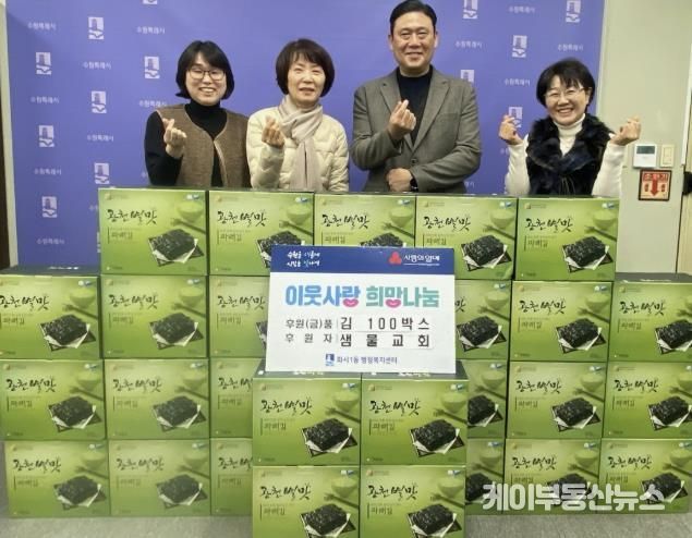 케이부동산뉴스 김교민 기자 | 수원시 팔달구 화서1동은 지난 18일, 샘물교회에서 연말을 맞아 화서1동 행정복지센터에 조미김 100박스를 후원하며 따뜻한 나눔을 실천했다고 밝혔다.