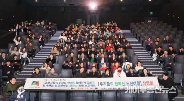 케이부동산뉴스 김교민 기자 | 안성시 장애인체육회는 발달장애인과 비장애인이 함께 한라산 정상에 오르는 도전 과정을 담은 ‘한라산 등반 다큐멘터리 상영회’를 성공적으로 개최했다고 밝혔다.