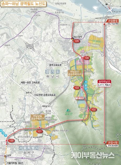 케이부동산뉴스 김교민 기자 | 경기도는 송파하남선 광역철도 건설사업의 도 시행 구간인 2‧3‧4공구의 일괄입찰 공사 사업자 선정을 위한 입찰을 공고했다고 23일 밝혔다.