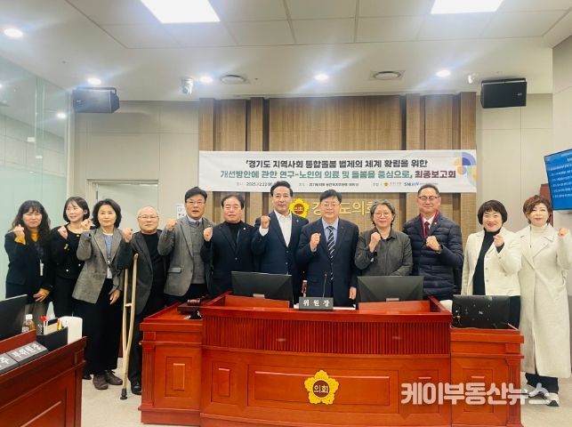케이부동산뉴스 김교민 기자 | 경기도의회 보건복지위원회 연구단체인 보건복지연구회(회장 이선구 위원장, 더불어민주당, 부천2)는 12월 22일, '경기도 지역사회 통합돌봄 체계 확립을 위한 개선방안에 관한 연구'를 주제로 연구용역 최종보고회를 개최했다.