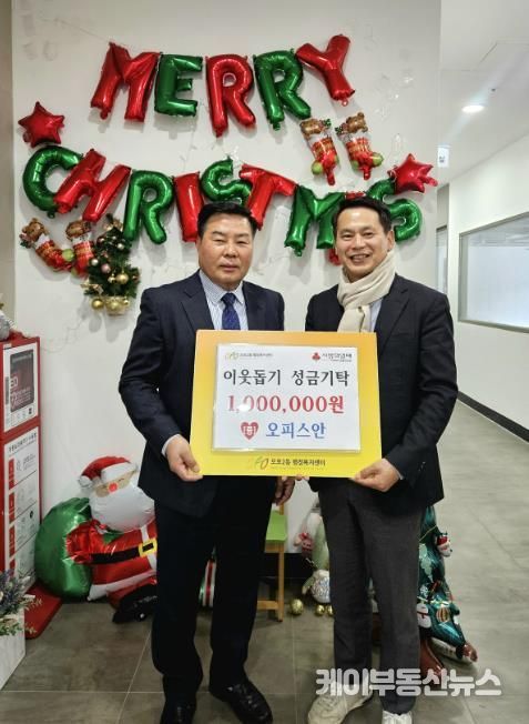 케이부동산뉴스 김교민 기자 | 광주시 매산동에 소재한 오피스안의 안겸제 대표는 지난 24일 오포2동 행정복지센터를 방문해 지역 내 어려운 이웃을 위해 사용해달라며 성금 100만 원을 기탁했다.