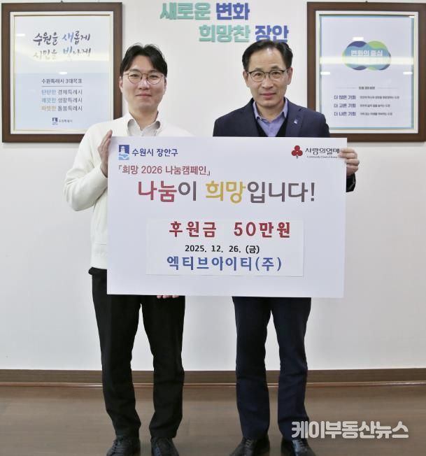 케이부동산뉴스 김교민 기자 | 수원시 장안구는 지난 26일 송죽동 소재 엑티브아이티(주)가 기부금 50만 원을 전달했다고 밝혔다. 이번 기부는 장안구 관내 어려운 이웃을 돕기 위한 것으로, 지역사회에 온정을 나누는 뜻깊은 자리다.