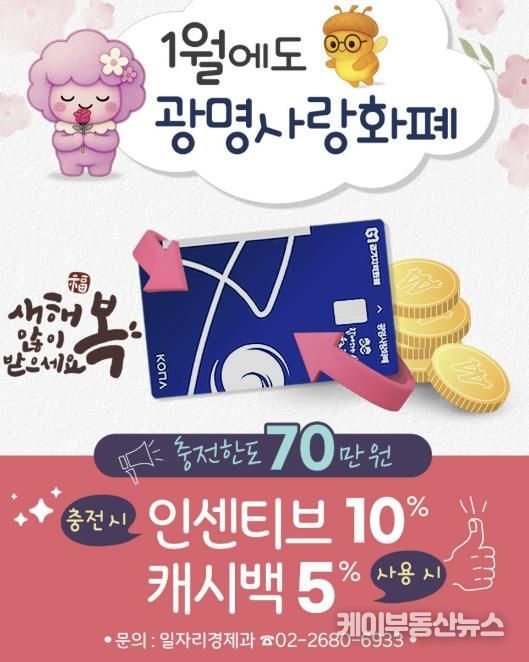 케이부동산뉴스 김교민 기자 | 광명시가 활력을 상징하는 ‘붉은 말의 해’ 병오년(丙午年)을 맞아, 지역경제에 힘찬 기운을 불어넣기 위해 광명사랑화폐 혜택을 이어간다.