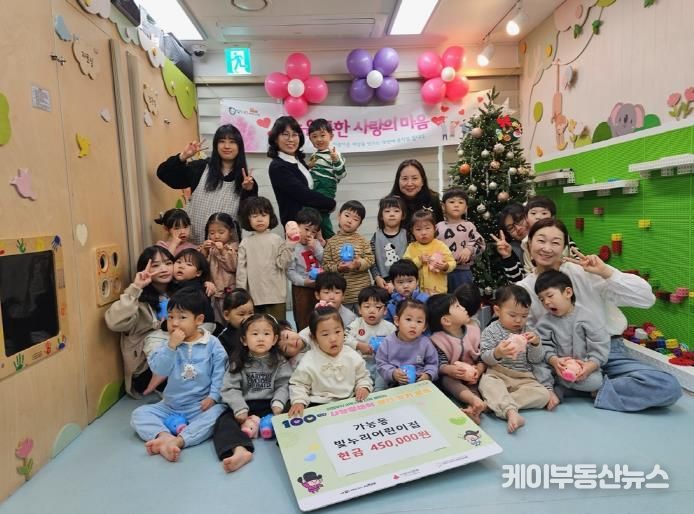 케이부동산뉴스 김교민 기자 | 의정부시 가능동주민센터는 12월 29일 공립빛누리어린이집이 지역 내 어려운 이웃을 돕기 위해 성금 45만 원을 기탁했다고 밝혔다.
