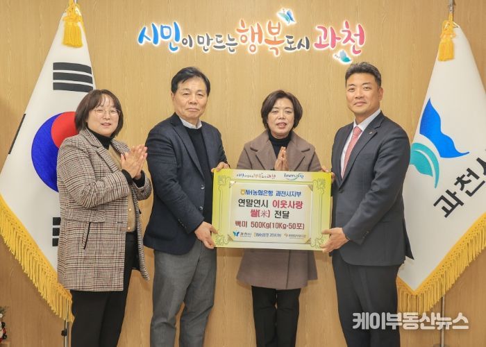 케이부동산뉴스 김교민 기자 | 과천시는 연말연시를 맞아 NH농협은행 과천시지부가 지역 내 도움이 필요한 이웃을 위해 쌀 10kg 50포를 기부했다고 31일 밝혔다.