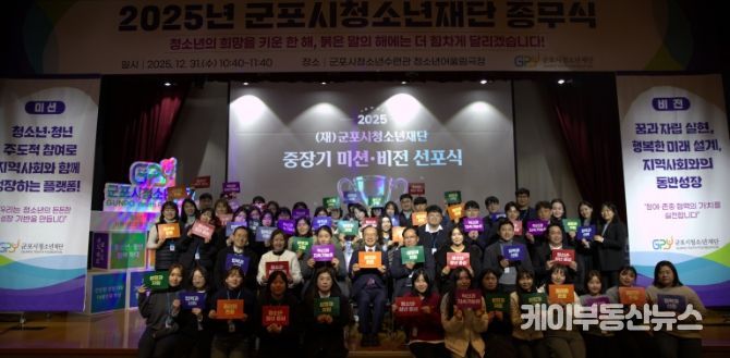 케이부동산뉴스 김교민 기자 | 군포시청소년재단은 2025년 한 해를 마무리하고 새로운 도약을 다짐하기 위해 '2025년 미션·비전 선포식'을 개최했다.