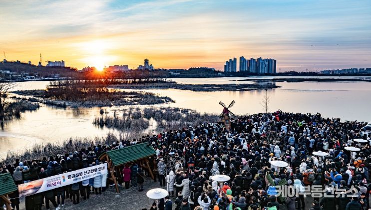 케이부동산뉴스 김교민 기자 | 2026년 병오년(丙午年) 새해 첫날인 1일, 이른 새벽부터 의왕시 왕송호수는 첫 일출을 보려는 시민들로 붐볐다.