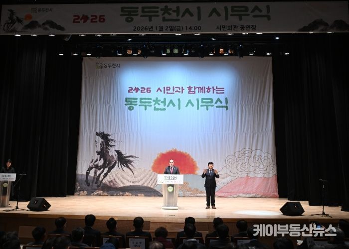 케이부동산뉴스 김교민 기자 | 동두천시는 2026년 병오년(丙午年) 새해를 맞아 1월 2일 오후 2시 시민회관 공연장에서 시민과 함께하는 ‘2026년 시무식’을 개최했다.
