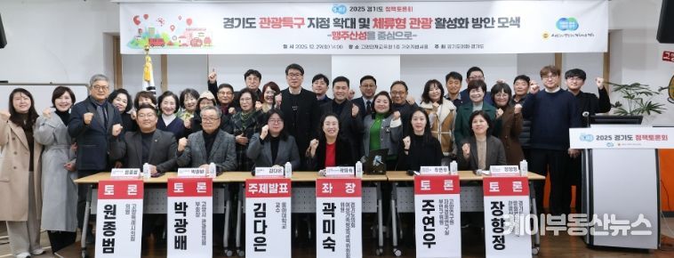 케이부동산뉴스 김교민 기자 | 경기도의회 여성가족평생교육위원회 곽미숙 위원(국민의힘, 고양6)은 12월 29일 고양인재교육원 가와지볍씨홀에서 「경기도 관광특구 지정 확대 및 체류형 관광 활성화 방안 모색」을 주제로 정책토론회를 주재했다. 이번 토론회는 경기도와 경기도의회가 공동 주최한 ‘2025 경기도 정책토론회’의 일환으로, 행주산성을 중심으로 한 관광정책의 방향을 점검하고 실질적인 대안을 논의하기 위해 마련됐다.