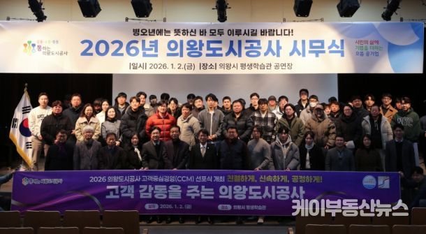 케이부동산뉴스 김교민 기자 | 의왕도시공사가 1월 2일 의왕시 평생학습관 3층 공연장에서 고객중심경영(CCM)을 실천하기 위한 선포식을 개최했다.