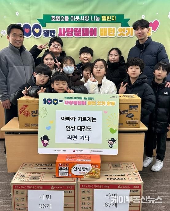 케이부동산뉴스 김교민 기자 | 의정부시 호원2동주민센터는 12월 31일 아빠가 가르치는 인성태권도 수련생들이 정성을 모아 취약계층을 돕기 위한 라면 310개를 기탁했다고 전했다.
