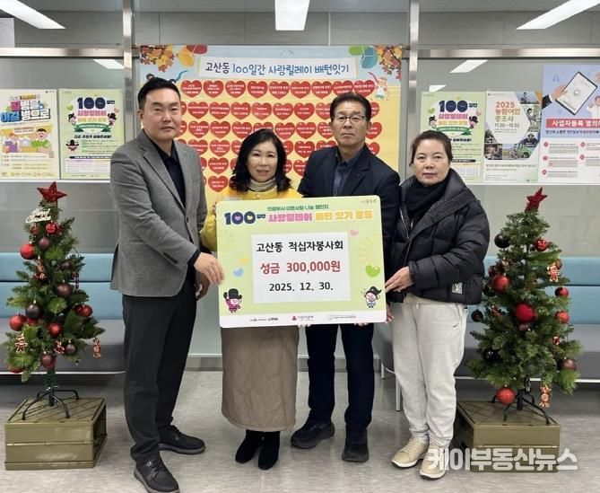 케이부동산뉴스 김교민 기자 | 의정부시 고산동주민센터는 12월 30일 고산동 적십자봉사회가 성금 30만 원을 기부하며 ‘100일간 사랑릴레이 배턴 잇기’에 동참했다고 밝혔다.