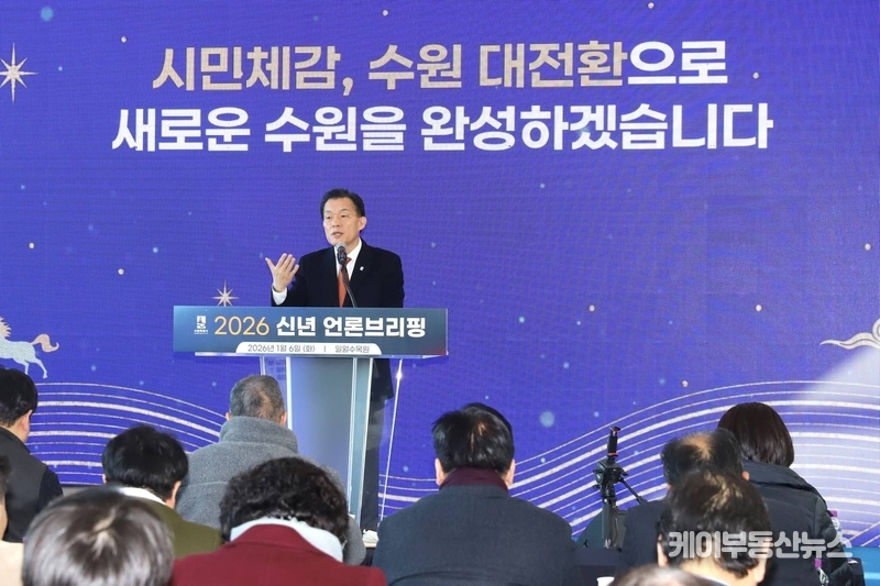 케이부동산뉴스 김교민 기자 | 이재준 수원특례시장은 6일 오전 10시 일월수목원에서 신년 기자회견을 열고 “2026년을 ‘시민체감 수원 대전환의 해’로 정하고, 시민의 삶의 현장에서 실제로 작동하는 정책을 통해 새로운 수원을 완성하겠다”고 밝혔다.