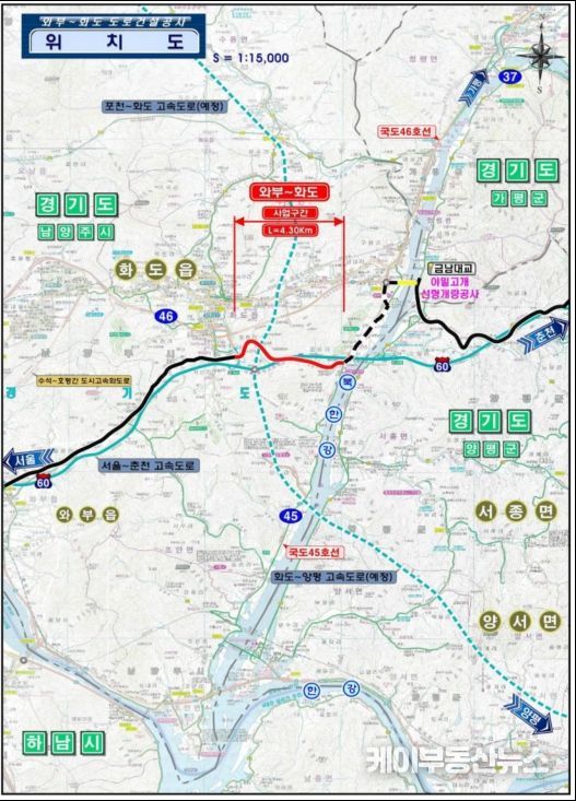 케이부동산뉴스 김교민 기자 | 국가지원지방도 86호선 와부~화도 4.3㎞ 구간이 5년 8개월 동안의 공사를 마치고 13일 전격 개통된다.