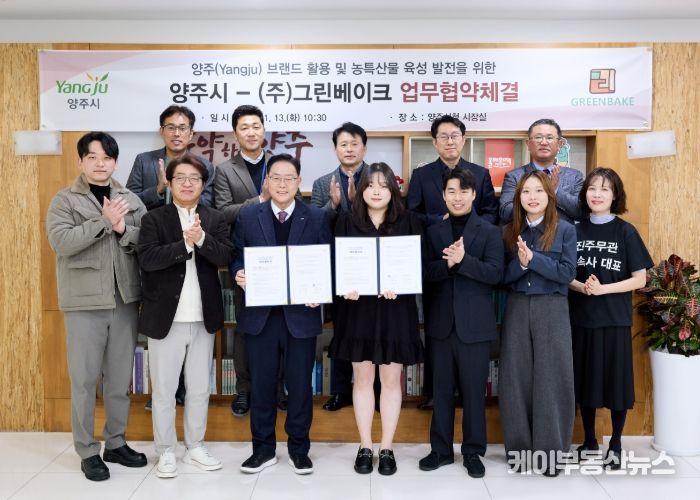 케이부동산뉴스 김교민 기자 | 양주시는 13일 오전 ㈜그린베이크와 ‘양주(Yangju) 브랜드 활용 및 농특산물 육성 발전을 위한 업무협약(MOU)’을 체결했다고 밝혔다.