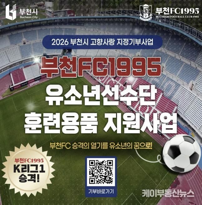 이번 지정기부사업은 10월까지 모금을 진행하며, 대상은 ‘부천FC1995 유소년 선수단 훈련용품 지원’(2천만 원)과 ‘맘(Mom)편한 택시 고향사랑 더하기’(3천만 원) 총 2개 사업이다.